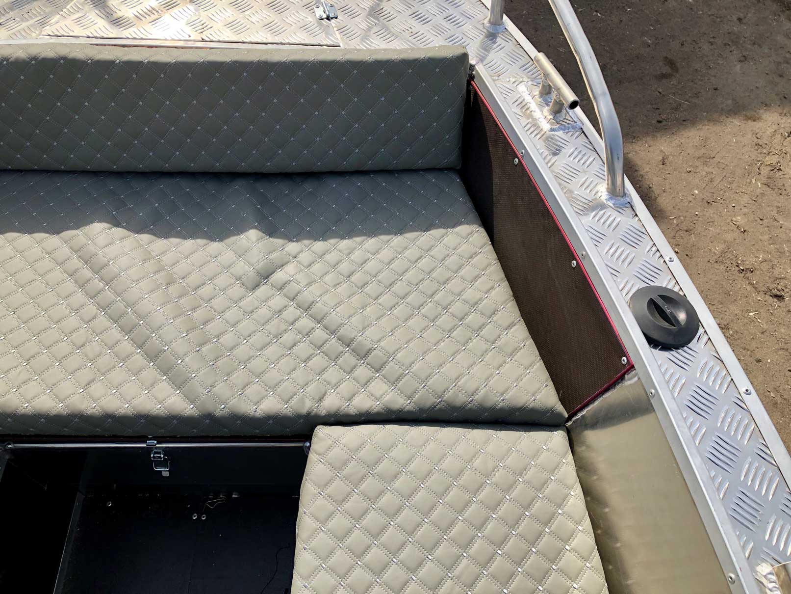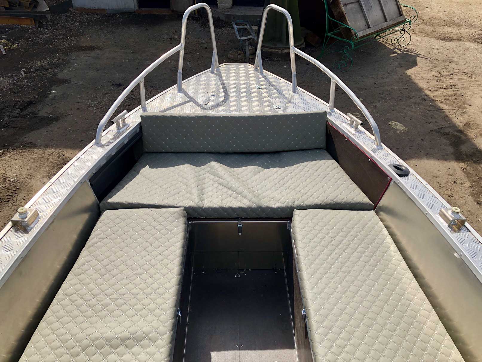 - Носовой кокпит оборудован сиденьем с рундуком для хранения вещей и оборудования